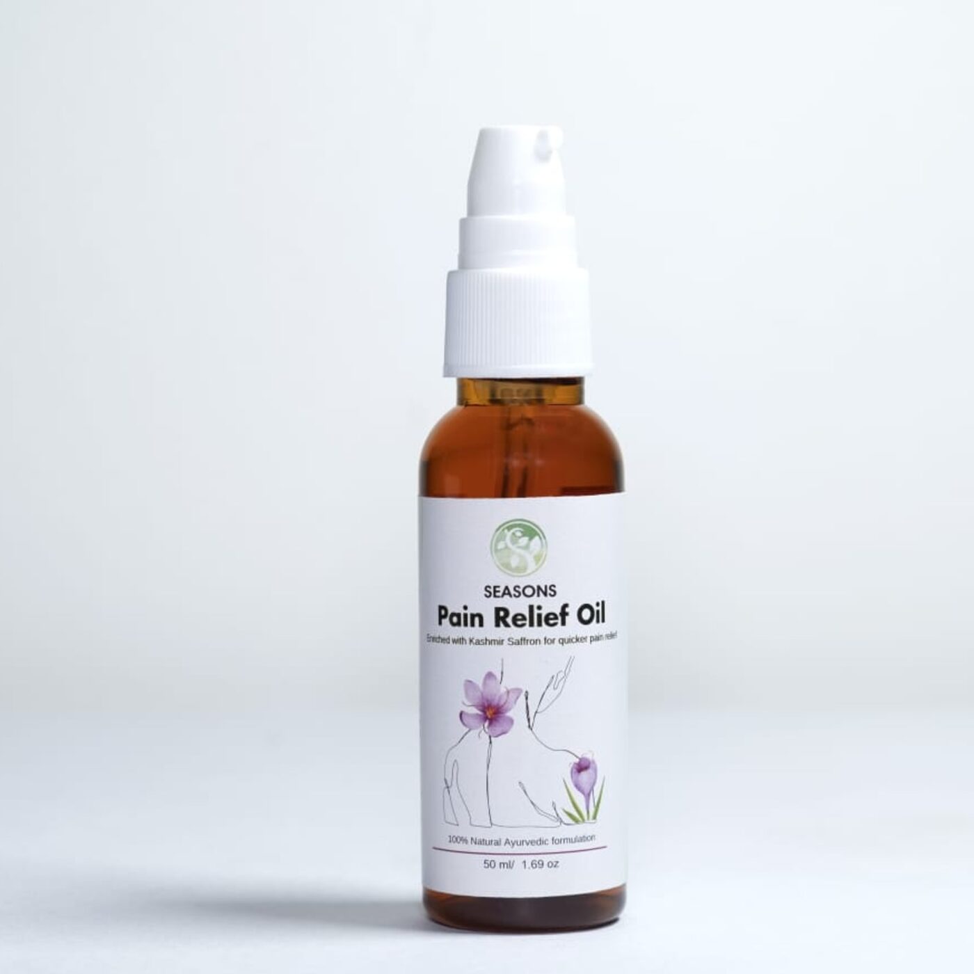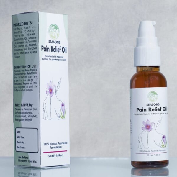 What sets Seasons Pain Relief Oil apart is its origin – the ingredients are sourced from the Himalayas, the deltas of the Ganges, and the mountains of Nilgiris. These regions are renowned for their pristine and untouched natural resources. The anti-inflammatory prowess of saffron, the cooling properties of menthol, the calming influence of camphor, the invigorating essence of eucalyptus, the soothing touch of basil, and the warming comfort of clove oil all come together to create a powerful synergy that caters to your pain relief needs. Whether it’s joint discomfort, muscle soreness, or tension headaches, Seasons Pain Relief Oil delivers care that’s rooted in nature’s wisdom, offering you a reliable and natural solution to your pain management journey.